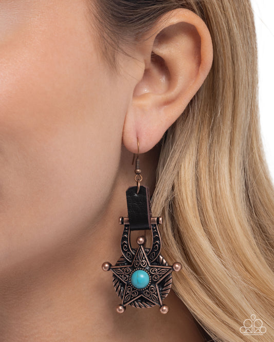 Western Warden - Copper Sheriff's Star Turquoise Stone Fishhook Earrings - Paparazzi Accessories