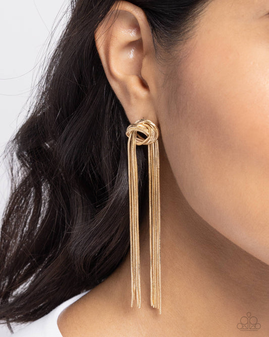 All STRANDS On Deck - Gold Tassel Earrings - Paparazzi Accessories
