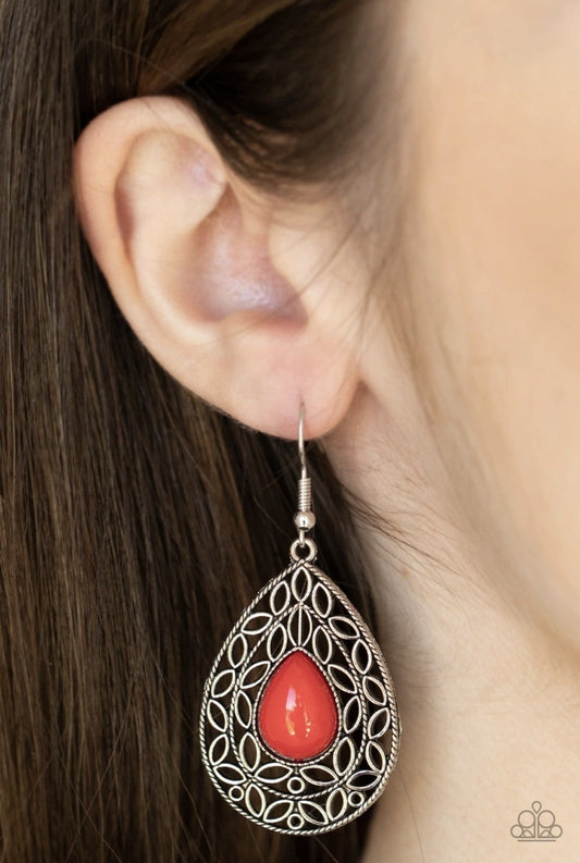 Fanciful Droplets - Red - Teardrop Frame Fishhook Earrings - Paparazzi Accessories