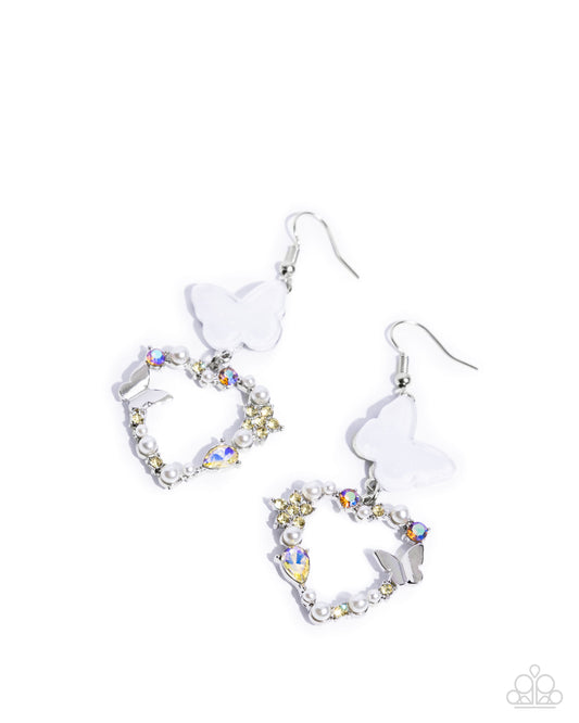 Flirty Flight - Yellow Iridescent Gem Heart Silver Butterfly Fishhook Earrings - Paparazzi Accessories