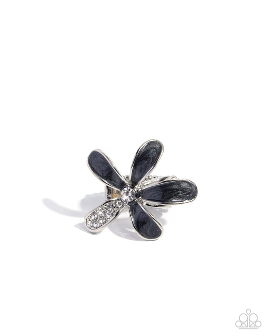 Floral Fit - Blue Enamel Flower Silver Ring - Paparazzi Accessories