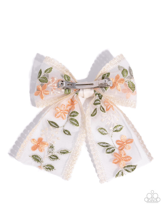 Garden Guardian - Orange Embroidered Lace Bow Hair Clip - Paparazzi Accessories