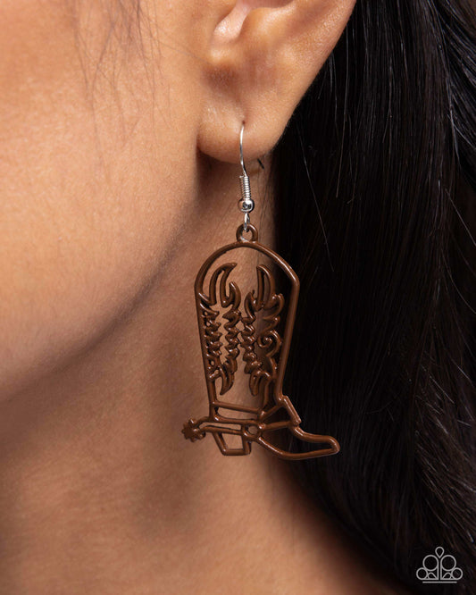 Given the Boot - Brown Dipped Metal Cowboy Boot Silver Fishhook Earrings - Paparazzi Accessories
