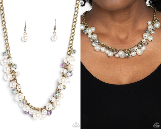 Glinting Goddess - Blue - Crystal and Pearl Necklace - Paparazzi Accessories