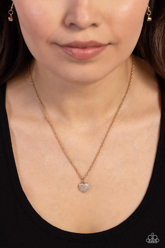 Goin Courtin - Gold Rhinestone Heart Necklace - Paparazzi Accessories