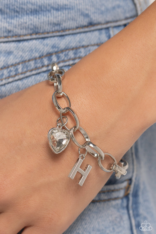 Guess Now Its INITIAL - White - H - Letter and Heart Charm Clasp Closure Bracelet - Paparazzi Accessories