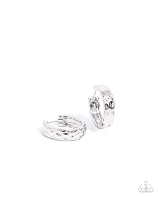 Hammered Hyperaware - Silver Hinge Hoop Earrings- Paparazzi Accessories