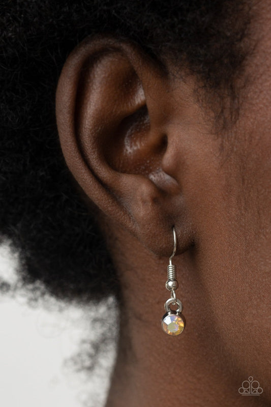 Hard to Forget - White Rhinestone Oval Silver Post Earrings - Paparazzi Accessories