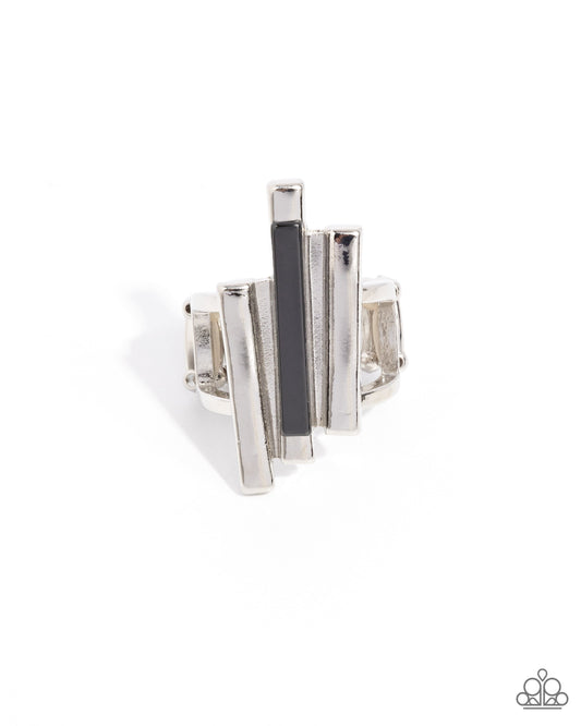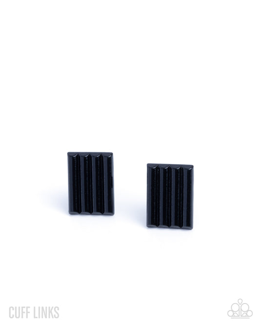 Lined Leader - White Rhinestone Silver Cuff Links - Paparazzi Accessories
