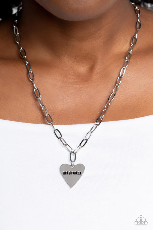 Mama Cant Buy You Love - Silver Heart Pendant Necklace - Paparazzi Accessories