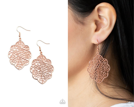 Meadow Mosaic - Copper - Leaf Frame Fishhook Earrings - Paparazzi Accessories