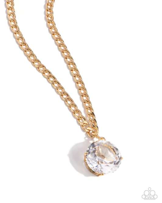Musings State of Mind - Gold Curb Chain & White Gem Necklace - Life of the Party Exclusive - Paparazzi Accessories