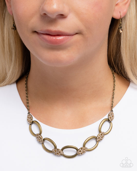 Radiant Restoration - Brass & Topaz Rhinestone Necklace - Paparazzi Accessories