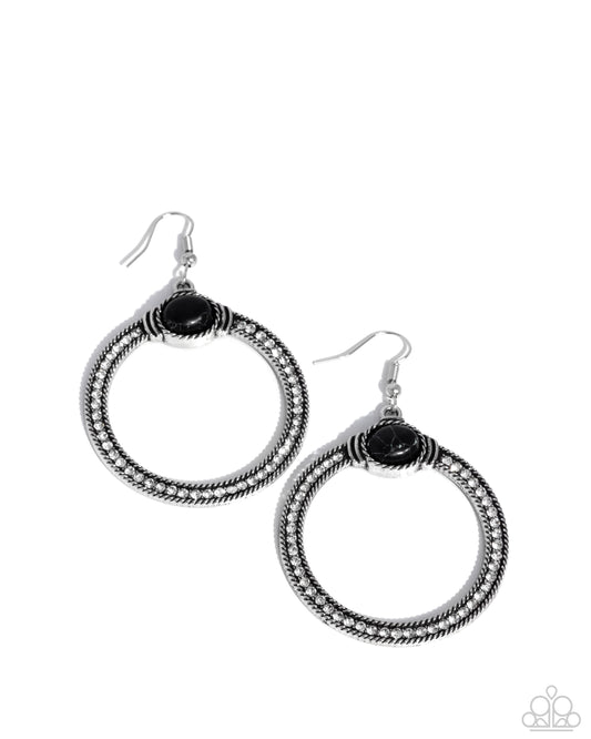 Radical Rusticity - Black Stone Silver Fishhook Earrings - Paparazzi Accessories
