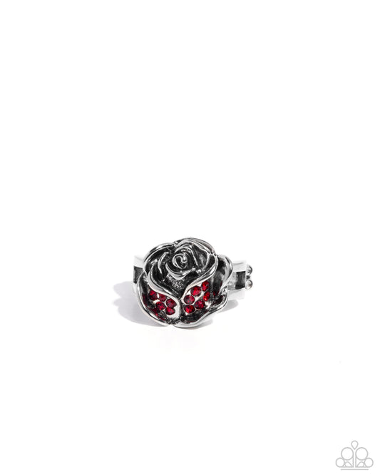 Rose Ranking - Red Rhinestone Silver Ring - Paparazzi Accessories