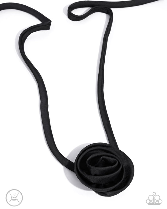Rosette Reality - Black Silk Ribbon Necklace - Life of the Party Exclusive - Paparazzi Accessories