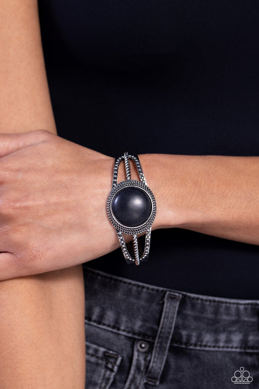 Sandstone Sojourn - Black Stone Silver Cuff Bracelet - Paparazzi Accessories