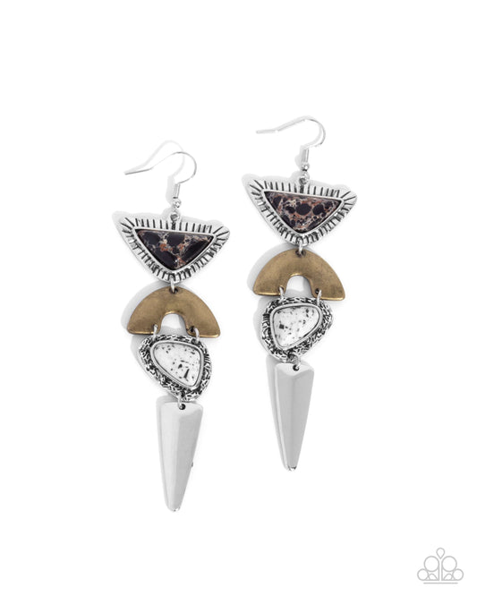 Shape Shifting Stones - Multi Metal & Marbled Stone Fishhook Earrings - Paparazzi Accessories