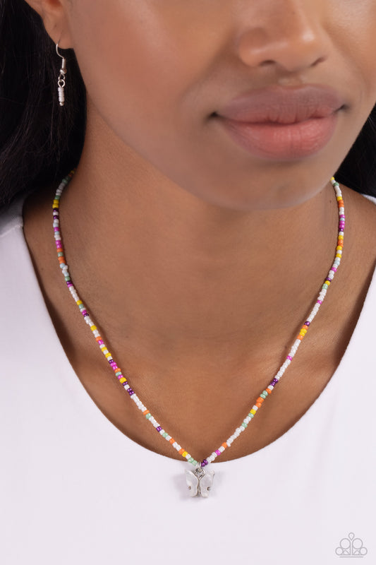 Soaring Song - Multi Rhinestone Silver Butterfly Flower Necklace - Paparazzi Accessories