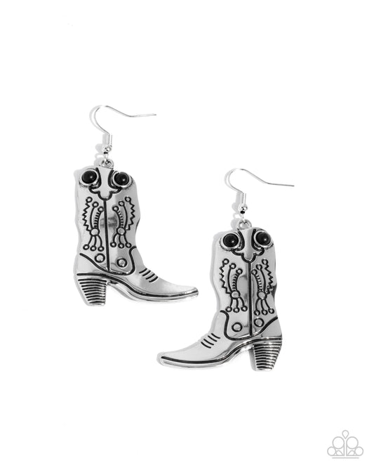 Southern Belle of the Ball - Pink Stone Silver Cowboy Boot Fishhook Earrings - Paparazzi Accessories