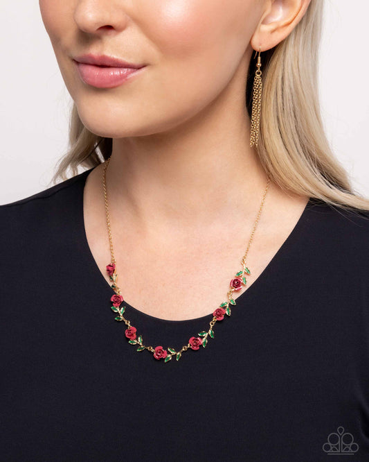 Tale As Old As PRIME - Pink Painted Roses Gold Necklace - Paparazzi Accessories