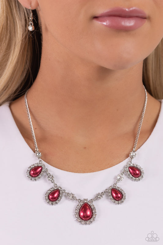Teardrop Team - Red Pearl Necklace - Paparazzi Accessories