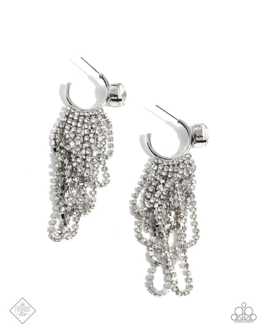 Ceaseless Chic - White - Rhinestone Fringe Paparazzi Hoop Earrings - March 2025 Fiercely 5th Avenue