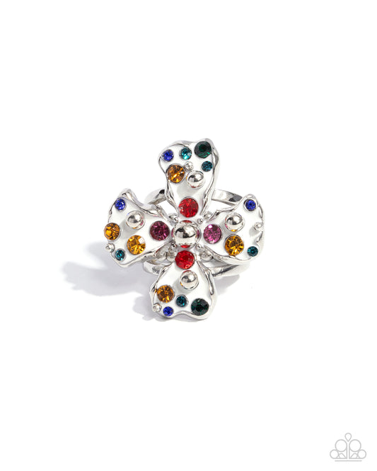 Chic Confession - White Enamel Multi Rhinestone Silver Ring - Paparazzi Accessories