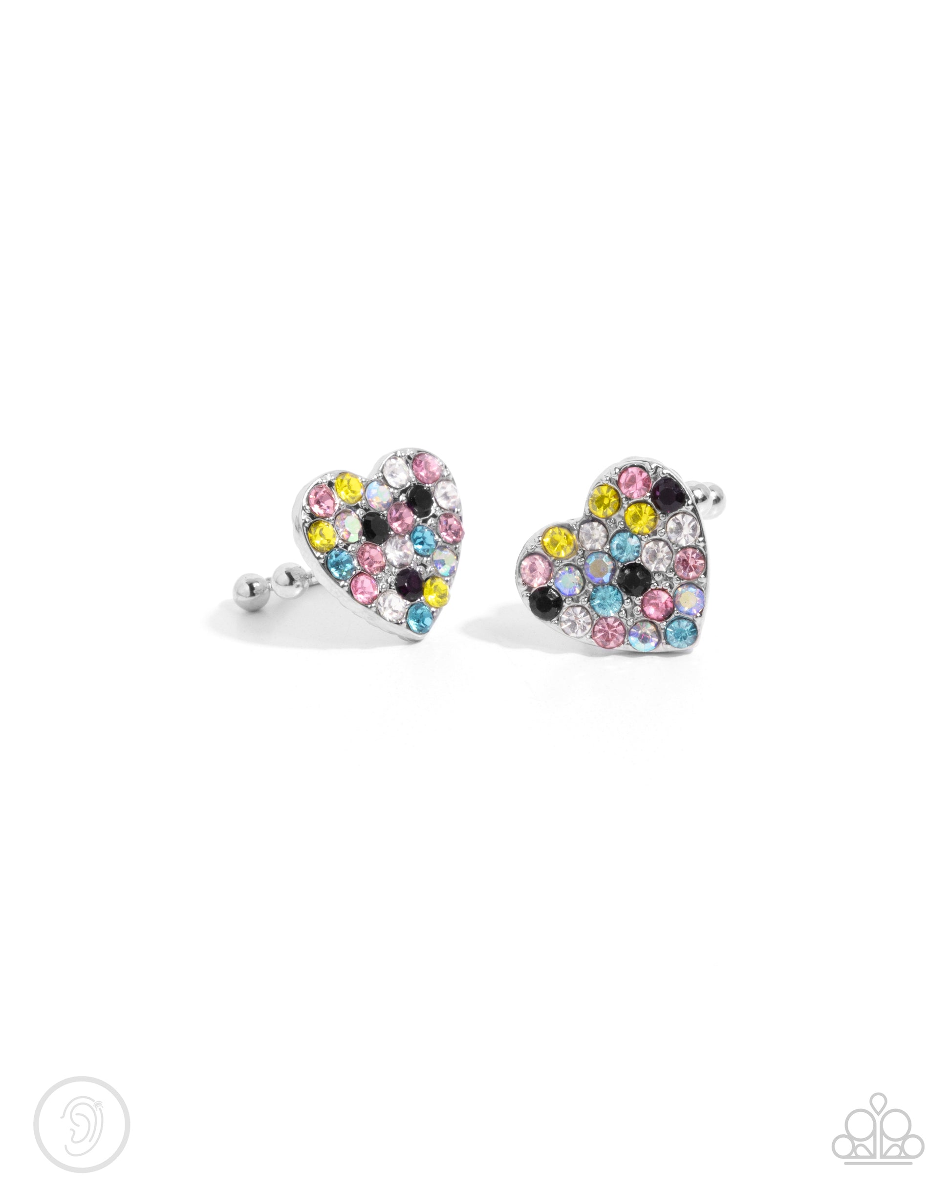As Far As It GLOWS - Multi & Iridescent Rhinestone Heart Silver Ear Cuff Earrings - Paparazzi Accessories