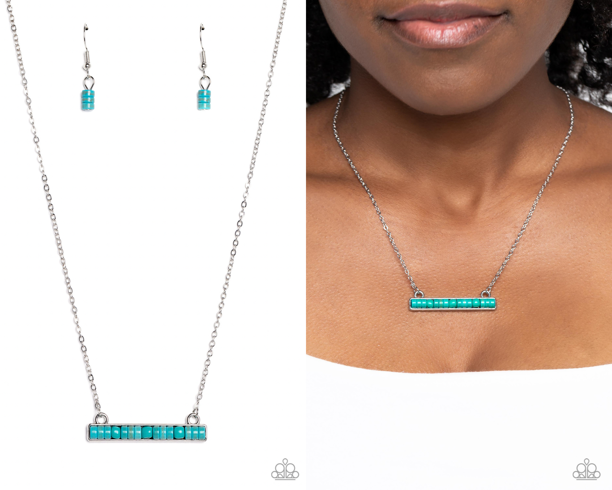Cascading from a dainty silver chain, a collection of earthy turquoise stone discs and beads are set in a square silver bar setting, creating an understated, harmonious display. Features an adjustable clasp closure. As the stone elements in this piece are natural, some color variation is normal.