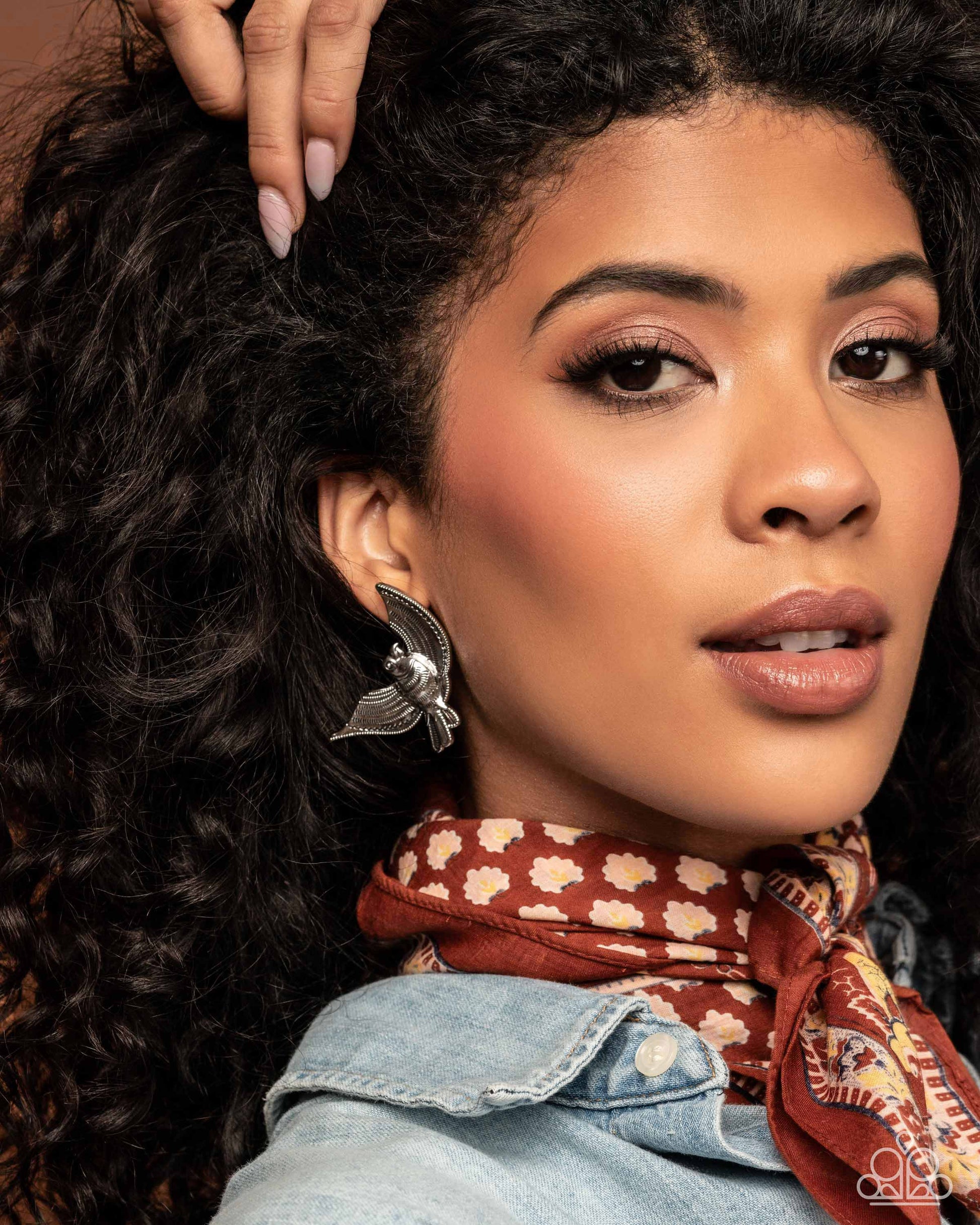 Bird of PLAY - Silver Post Earrings - Paparazzi Accessories