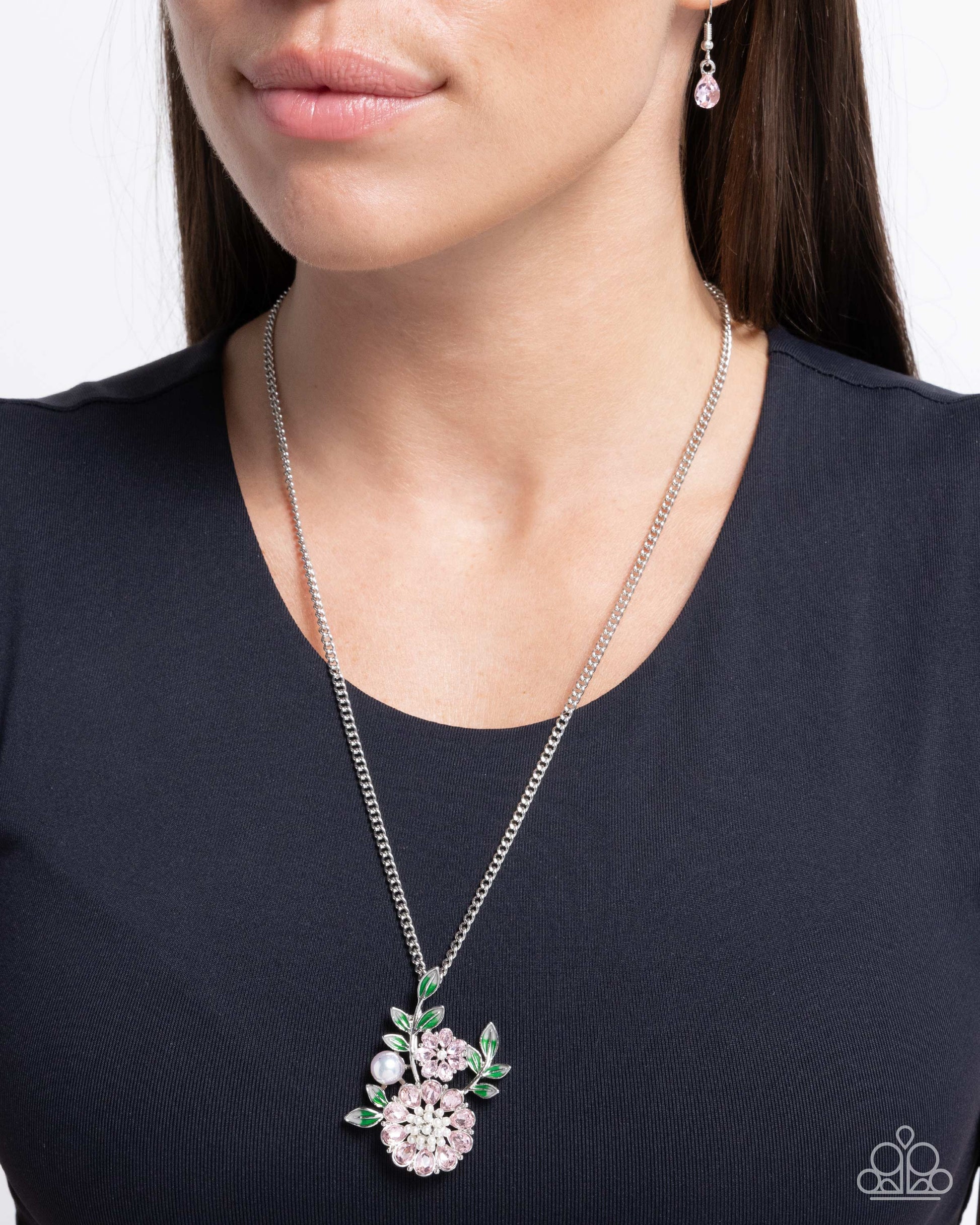Botanical Bunch - Pink Rhinestone Flower & Pearl Pendant Silver Necklace - Paparazzi Accessories