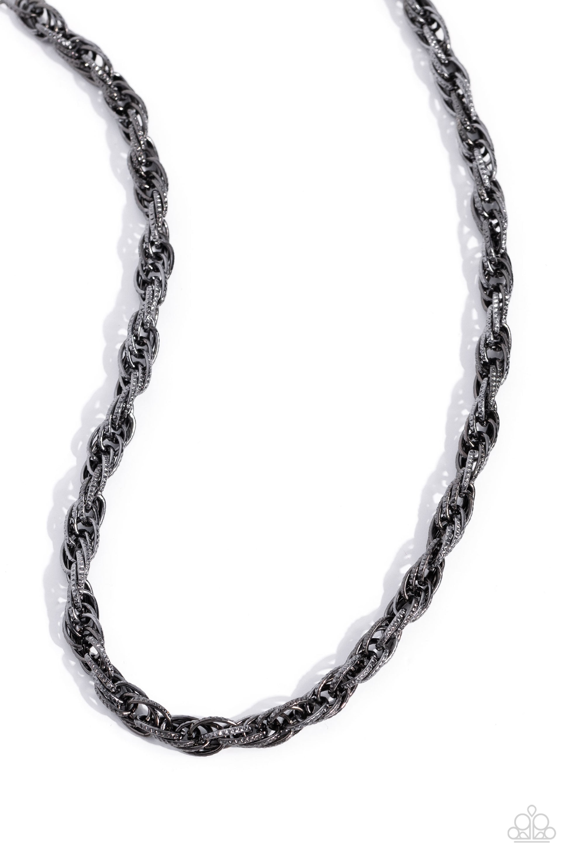 Braided Ballad - Black Gunmetal Necklace - Paparazzi Accessories