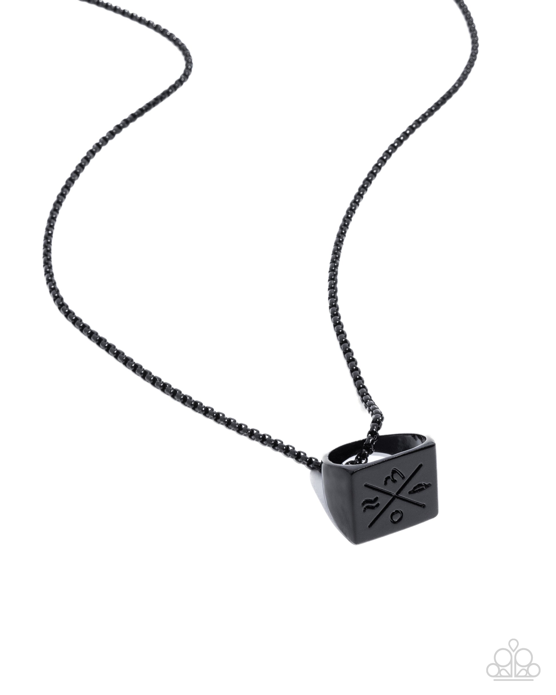 Featuring a compass signet, a thick black-painted ring is threaded along a rounded black-painted box chain for an enviable, explorer-inspired style below the neckline. Features an adjustable clasp closure.