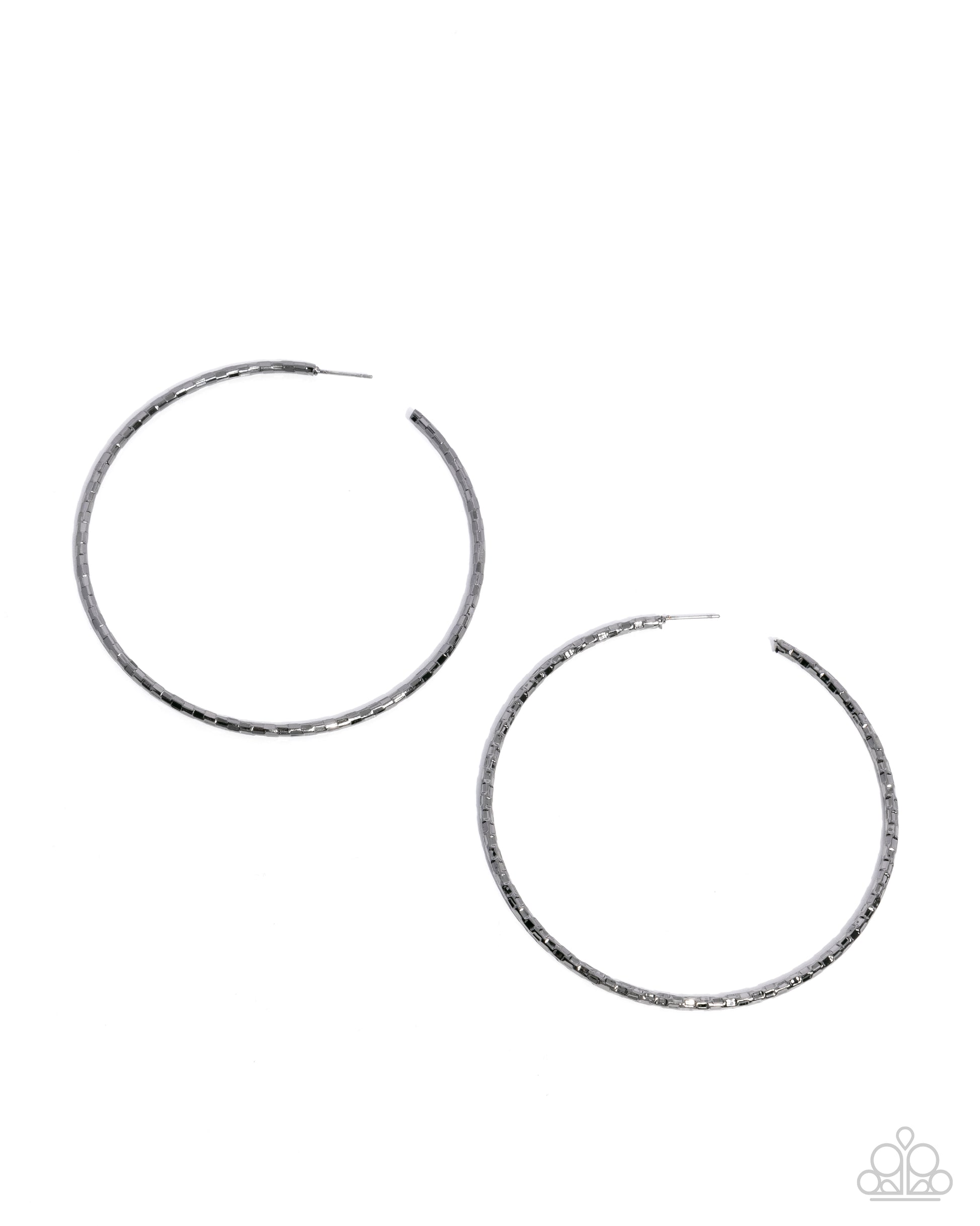 Closer To Chic - Black Gunmetal Hoop Earrings - Paparazzi Accessories