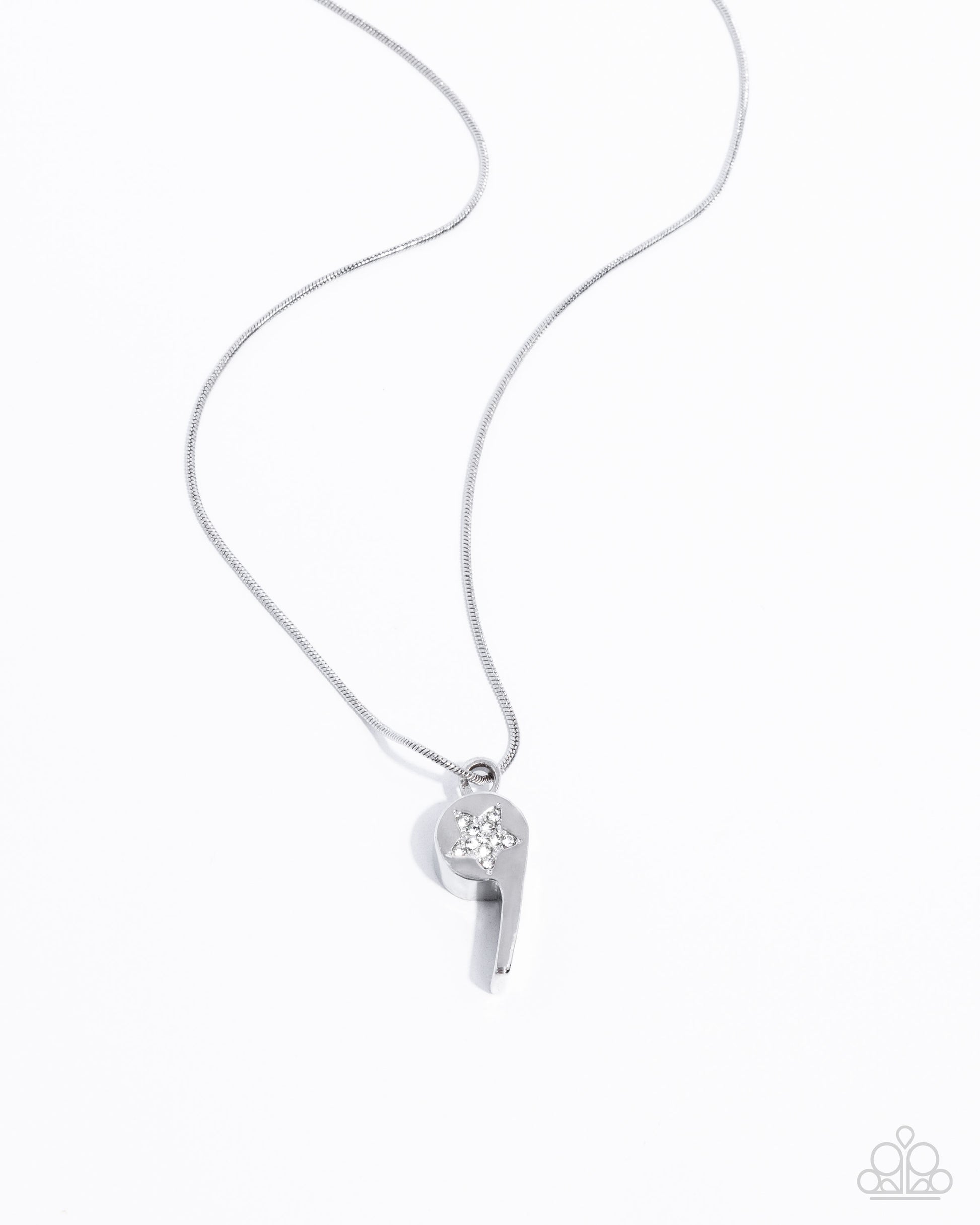 Coach Charisma - White Rhinestone Silver Whistle Necklace - Paparazzi Accessories