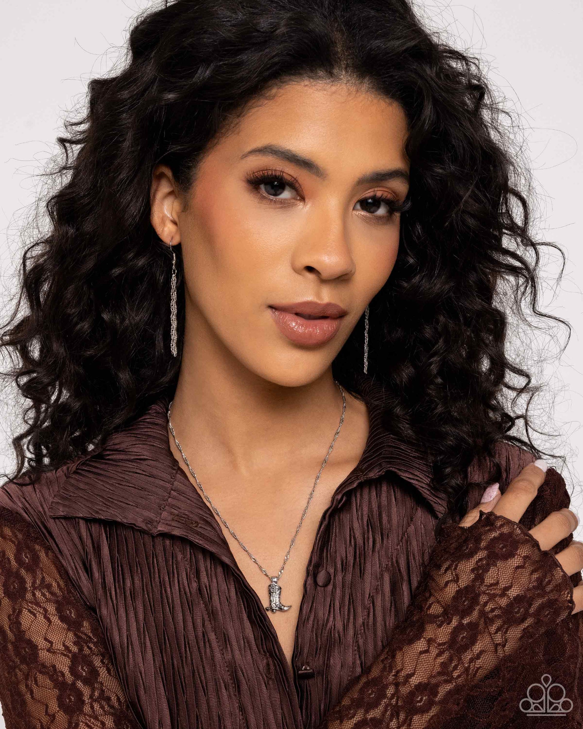 Collectable Cowboy - Silver Boot Necklace - Paparazzi Accessories