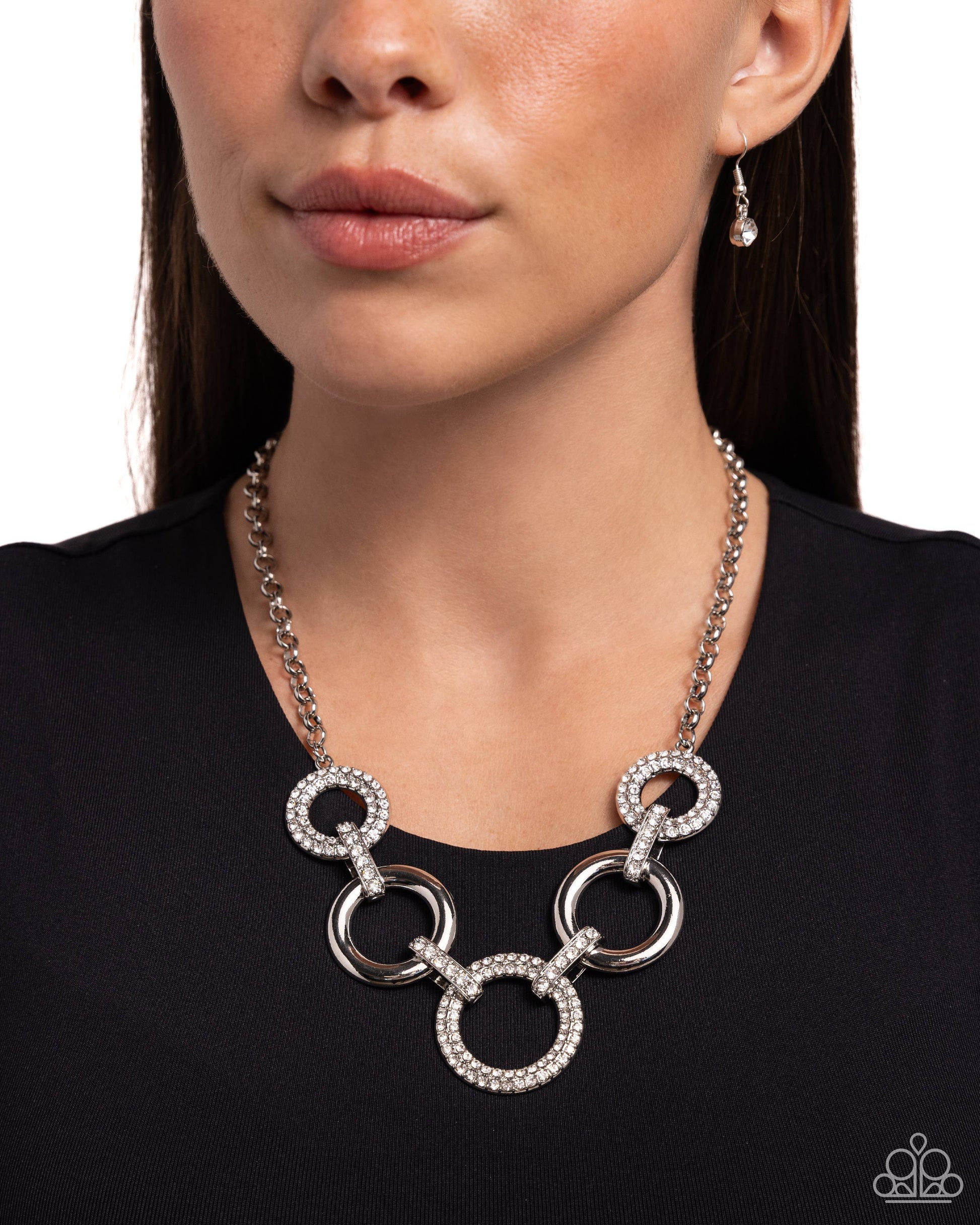 Cosmopolitan Confidence - White Rhinestone Rings Necklace - Paparazzi Accessories