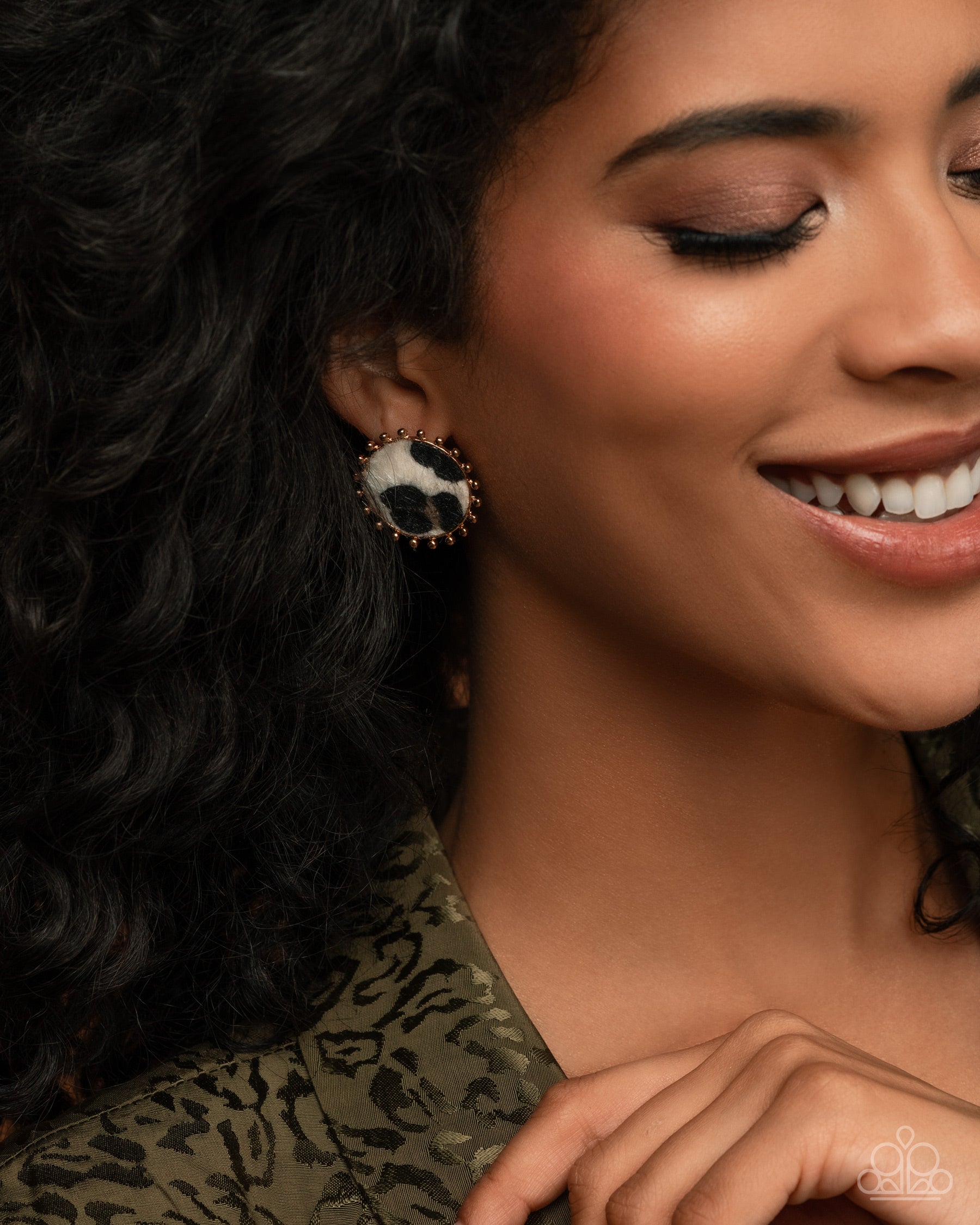 Cowhide Couture - Brown Cow-print Gold Post Earrings - Paparazzi Accessories