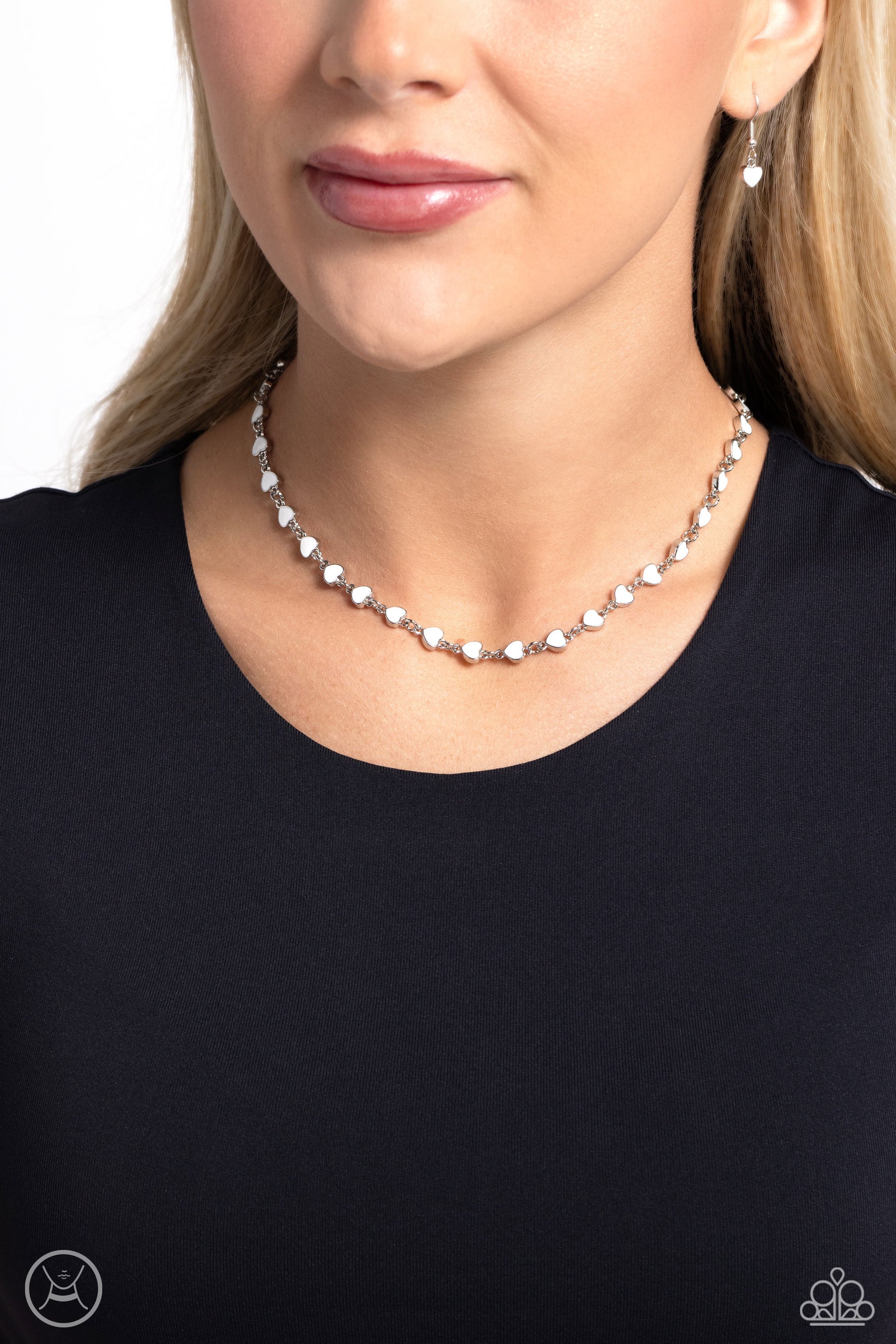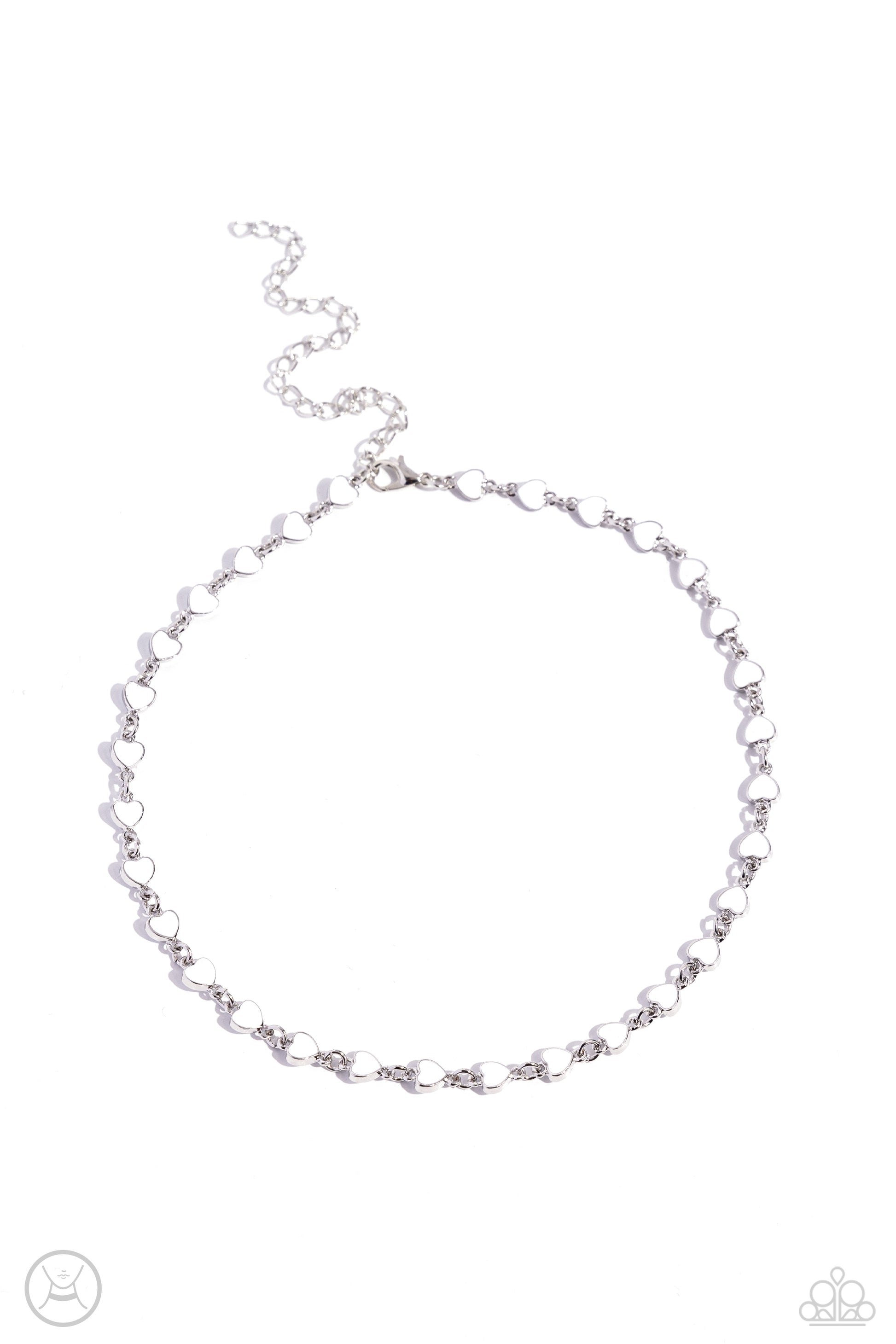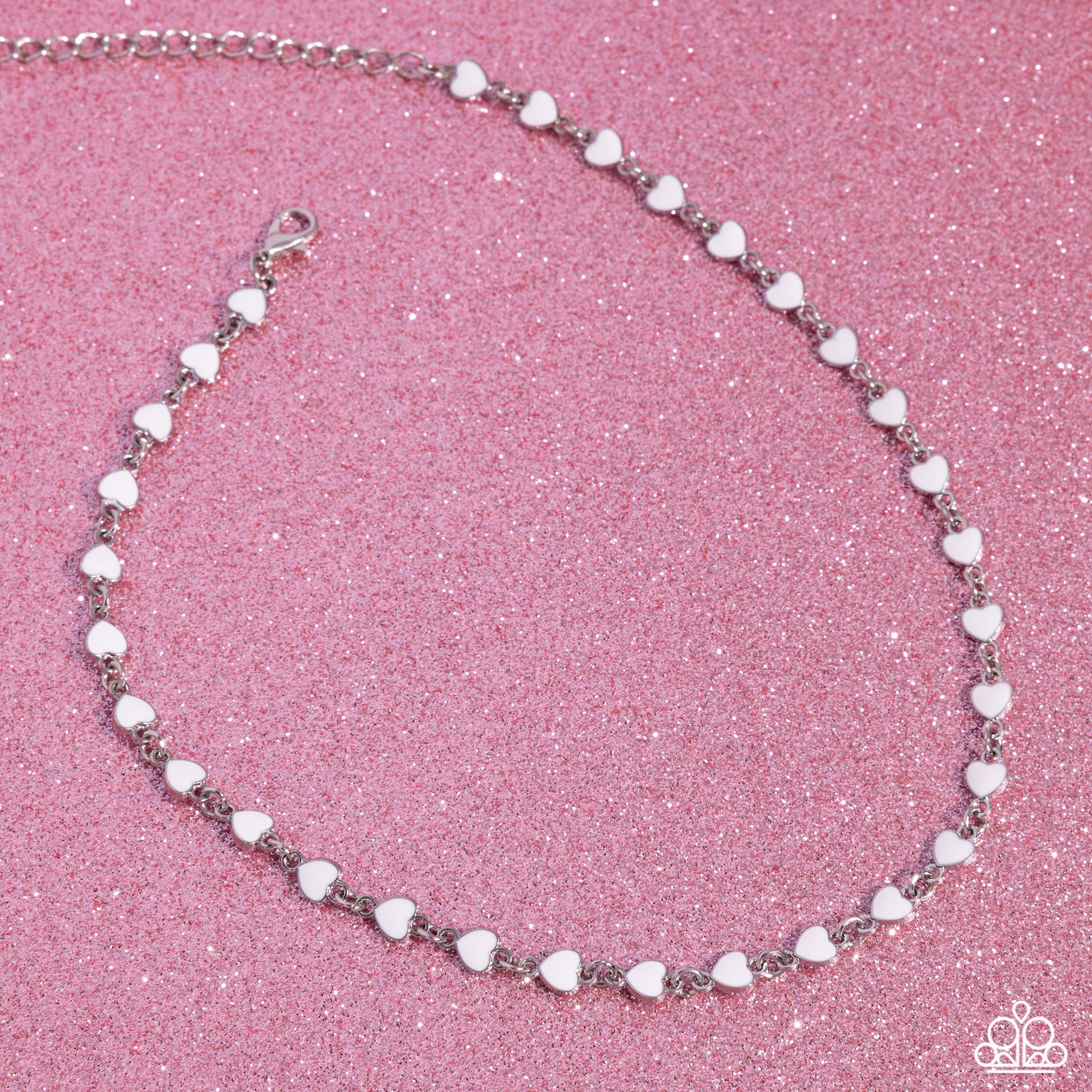 White-painted silver hearts interconnect around the collar for a simply sentimental look. Features an adjustable clasp closure.