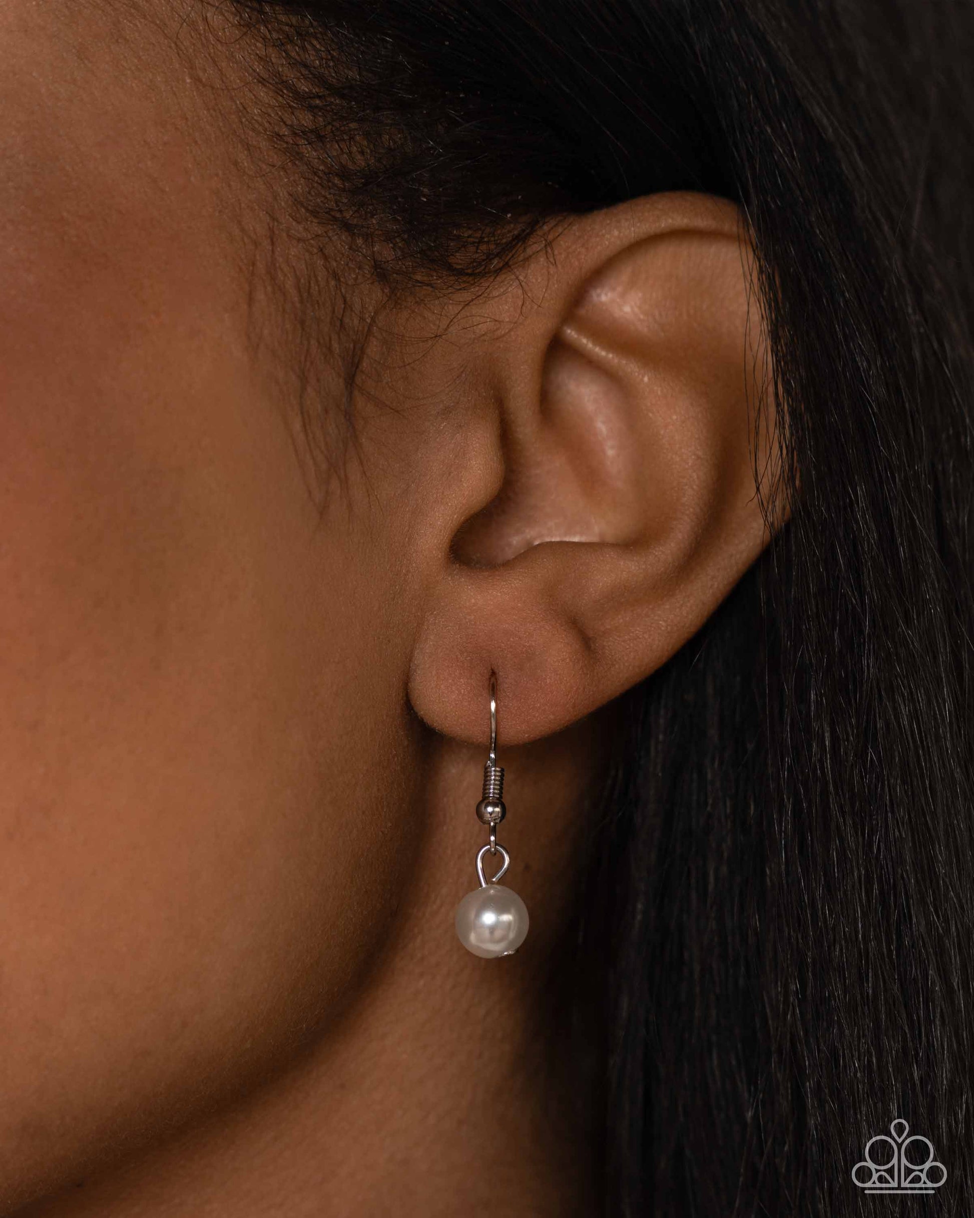 Darling Decade - White Pearl Silver Open-Ended Necklace - Empower Me Pink Exclusive 2025 - Paparazzi Accessories