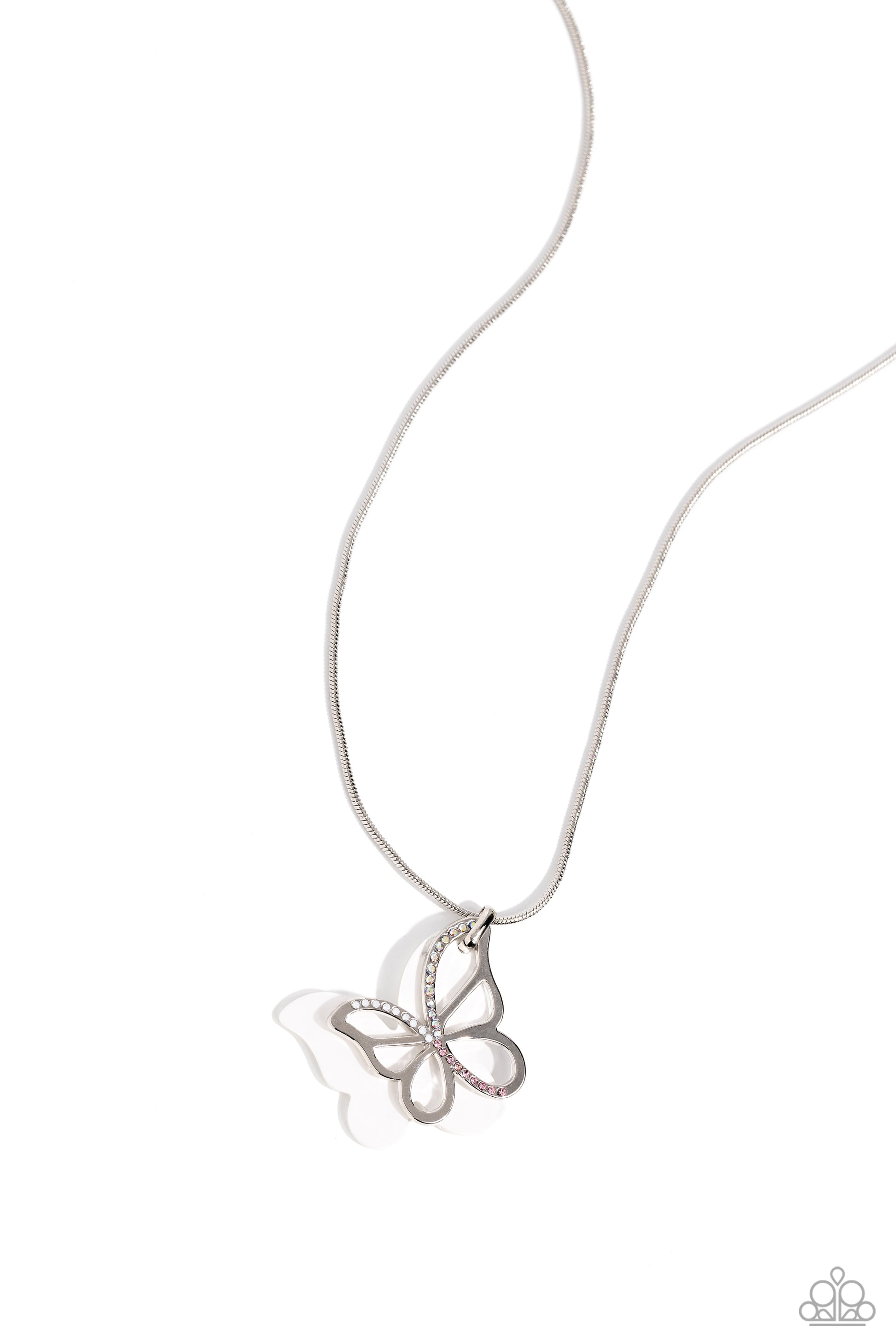 Detailed Dance - White Butterfly Necklace - Paparazzi Accessories