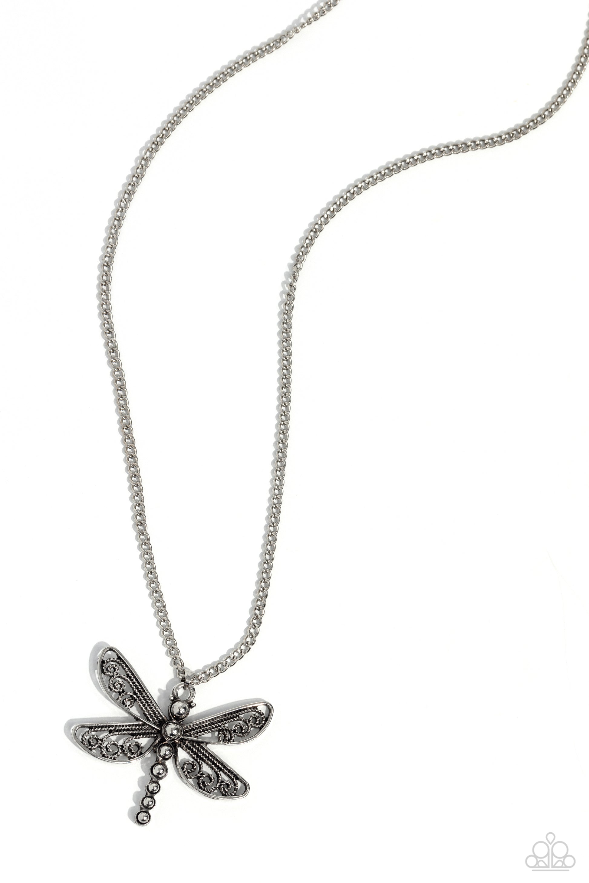 Dragonfly Dance - Silver Dragonfly Pendant Necklace - Paparazzi Accessories