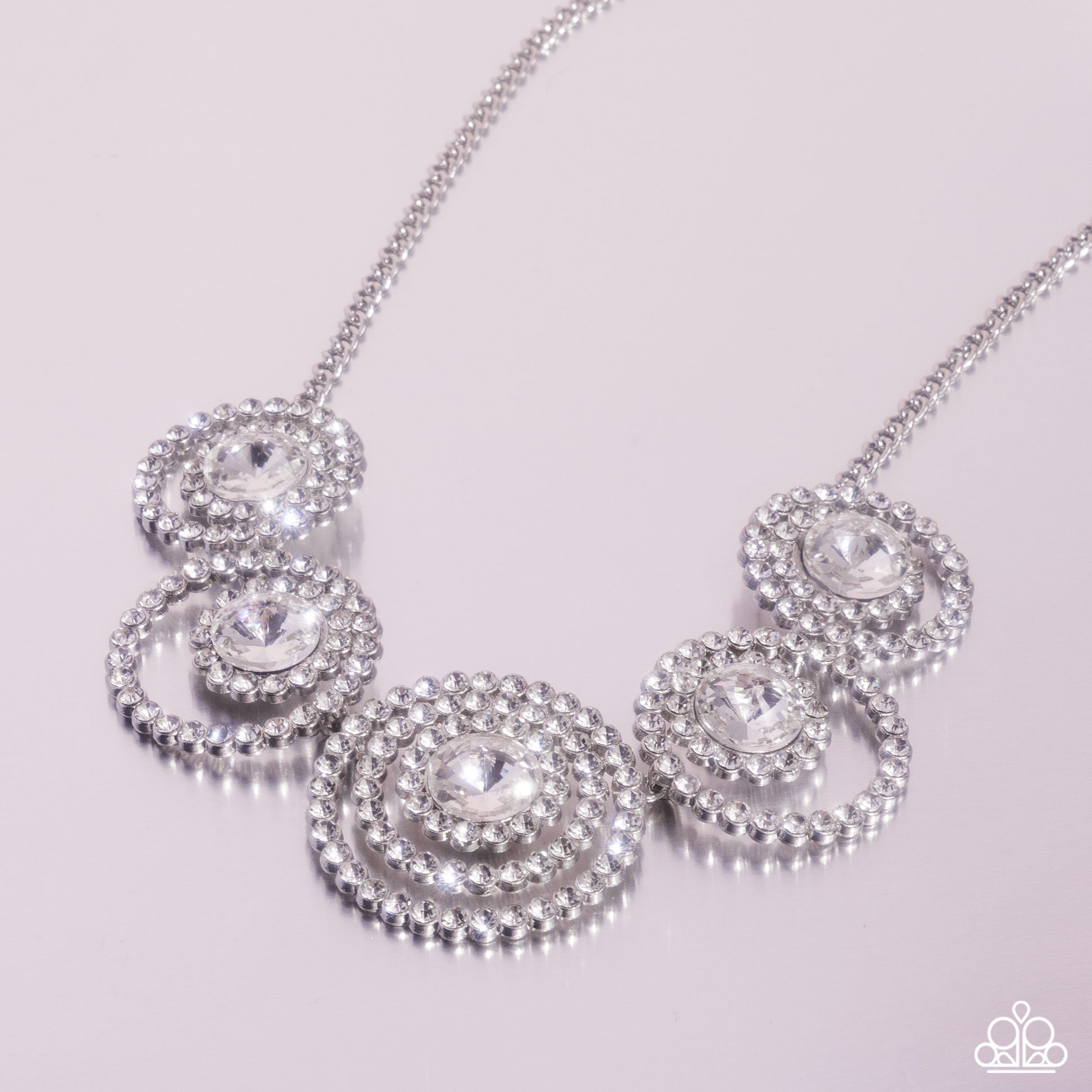 Dramatic Darling - White Rhinestone Circles Necklace - Paparazzi Accessories