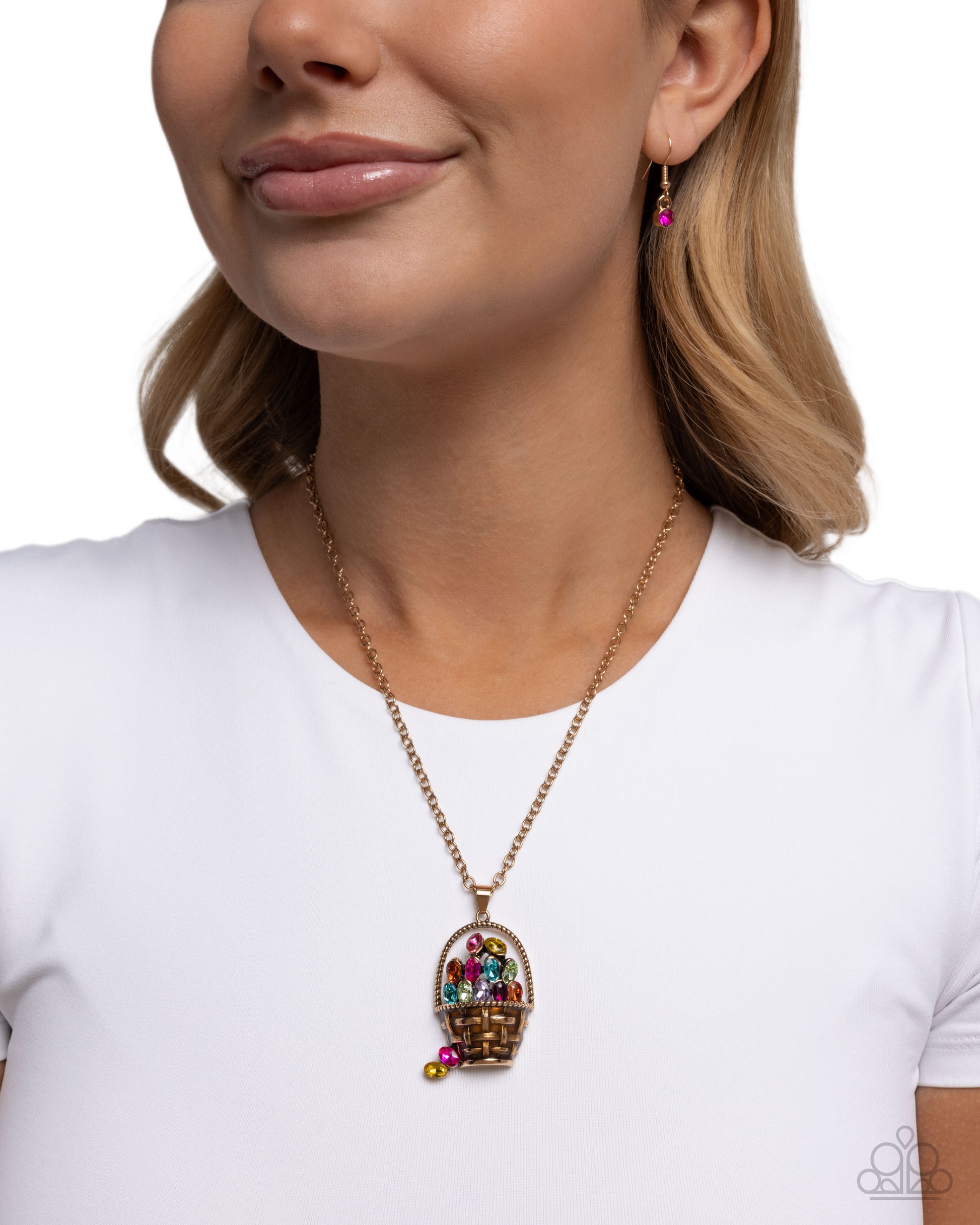 Easter Basket Brilliance - Multi Rhinestone Gold Pendant Necklace - Paparazzi Accessories