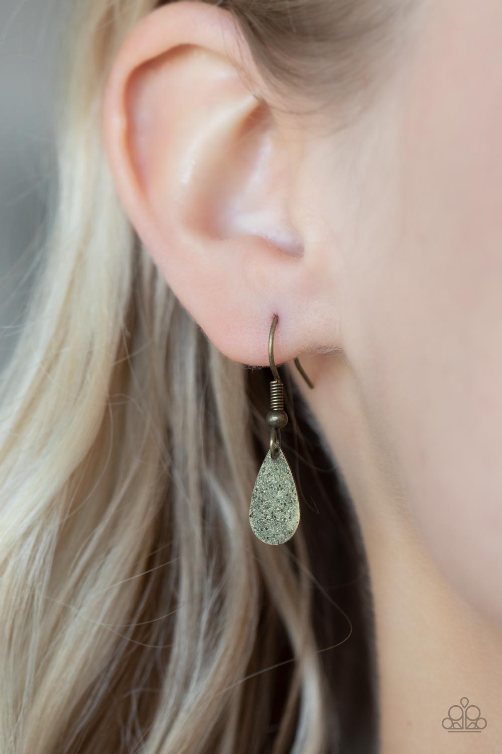 Delicately hammered in a rustic shimmer, a dainty row of flat brass teardrops drip from the bottom of a dainty brass chain below the collar for a minimalist inspired fashion. Features an adjustable clasp closure.