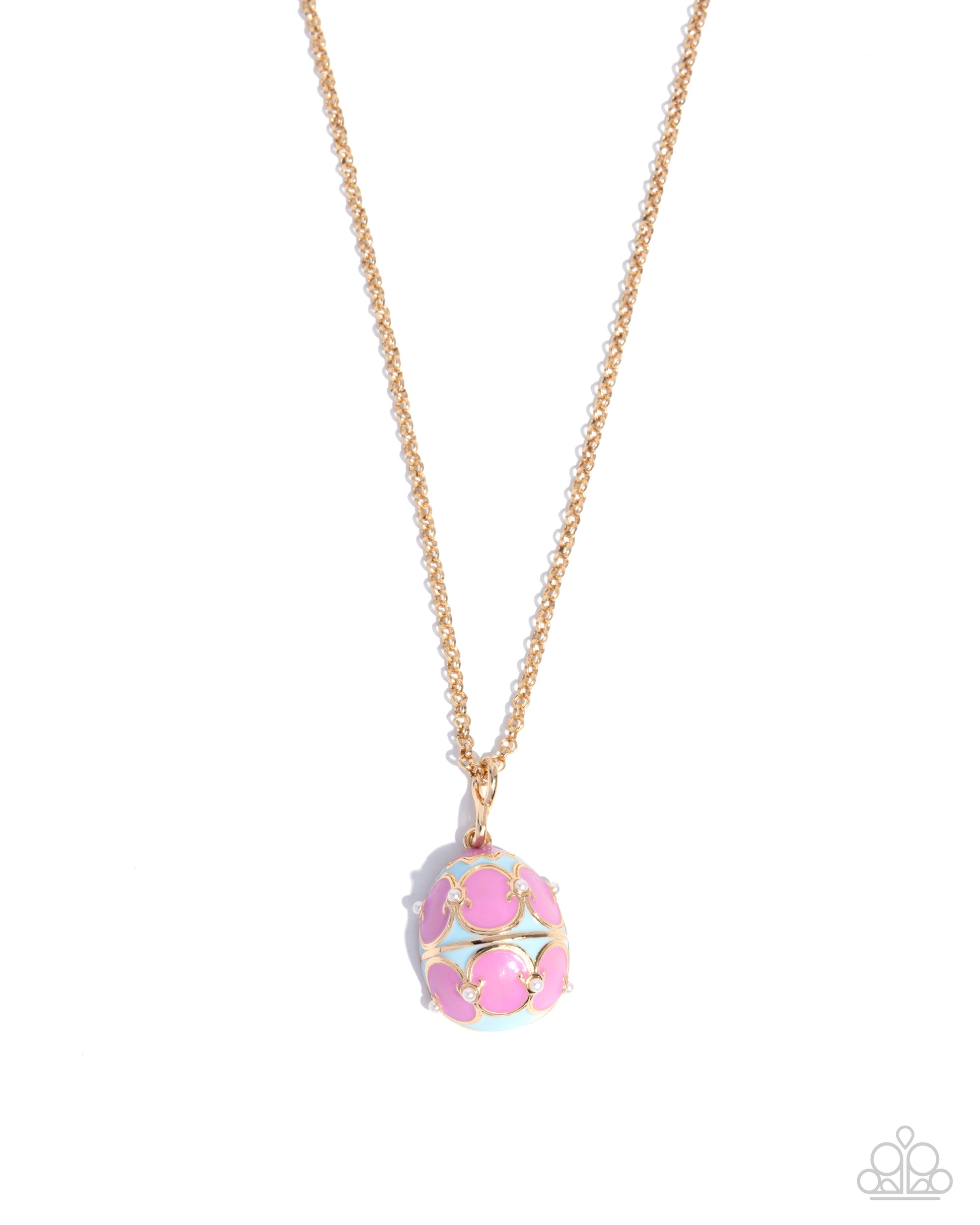 Elevated Easter - Gold, Pink & Blue Enamel Egg Pendant Necklace - Paparazzi Accessories