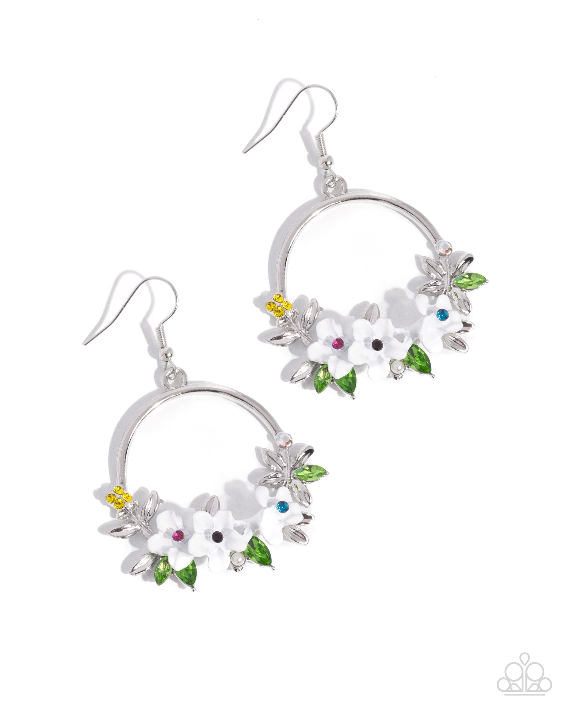 Fairy Freestyle - White Flower Fishhook Earrings - Paparazzi Accessories