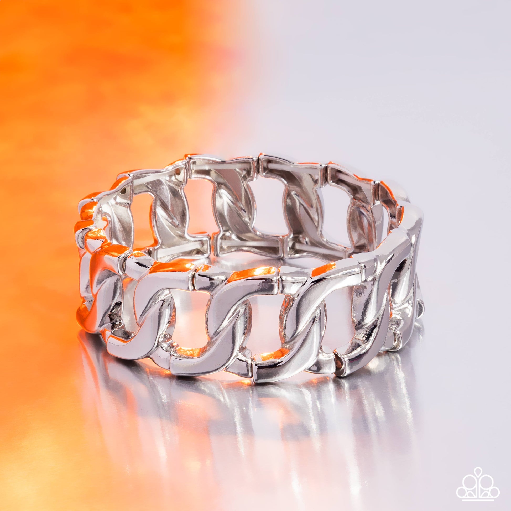 Forged in Fame - Silver Curb Chain Link Stretchy Bracelet - Paparazzi Accessories