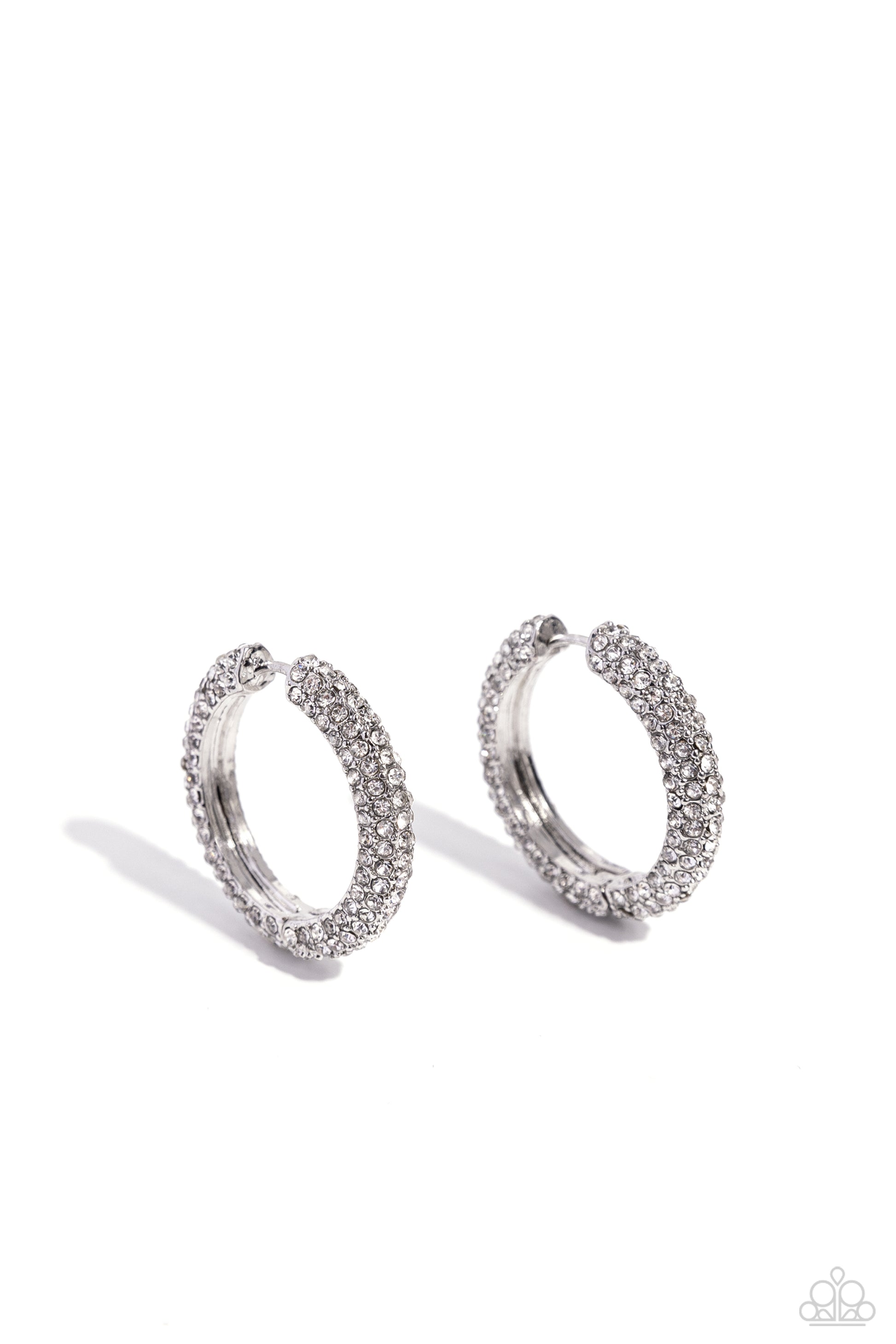 Glowing Praise - White Hinge Hoop Earrings - Paparazzi Accessories